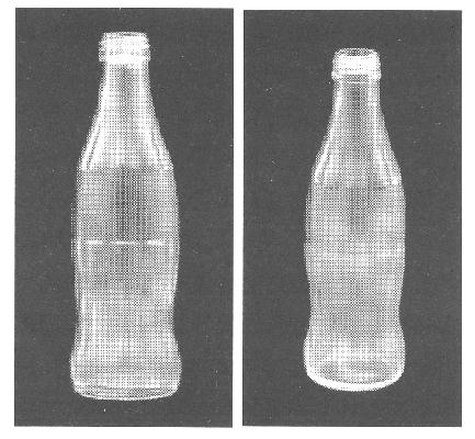 ![]() (判決別紙より) (c)「コカ・コーラボトル事件」 さらに、知財高裁平成20年5月29日判決 平成19年(行ケ)第10215号審決取消請求事件においても、コーラ飲料の容器の立体的形状について争われたところ、まず、「本願商標(図2−4、図2−5)の立体的形状は、(発売当初としてはともかく、)審決時(平成19年2月6日)を基準として、客観的に見れば、コーラ飲料の容器の機能又は美感を効果的に高めるために採用されるものと認められ、また、コーラ飲料の容器の形状として、需要者において予測可能な範囲内のものというべきである。」とされ、識別力が弱いと判断された。 しかし、「取引社会においては、取引者、需要者は、平面的に表記された文字、図形、記号等からなる1つの標章によって、商品の出所を識別する場合が多いし、また、商品の提供者等も、同様に、1つの標章によって、自他商品の区別をする場合が多く、また、便宜であるともいえる。しかし、現実の取引の態様は多様であって、商品の提供者等は、当該商品に、常に1つの標章のみを付すのではなく、むしろ、複数の標章を付して、商品の出所を識別したり、自他商品の区別をしようとする例も散見されるし、また、取引者、需要者も、商品の提供者が付した標章とは全く別の商品形状の特徴(平面的な標章及び立体的形状等を含む。)によって、当該商品の出所を識別し、自他商品の区別することもあり得るところである。そのような取引の実情があることを考慮すると、当該商品に平面的に表記された文字、図形、記号等が付され、また、そのような文字等が商標登録されていたからといって、直ちに、当該商品の他の特徴的部分(平面的な標章及び立体的形状等を含む。)が、商品の出所を識別し、自他商品の区別をするものとして機能する余地がないと解することはできない(不正競争防止法2条1項1号ないし3号参照)」とし、「本件において、リターナブル瓶入りの原告商品に「Coca-Cola」などの表示が付されている点が、本願商標に係る形状が自他商品識別機能を獲得していると認める上で障害になるというべきではない」と判断された。 この判決は、今後、実際に使用している商品が、識別力を有する他の文字商標が付されたものであっても、商品の形状そのものについて周知性を獲得することができれば、商品の立体的形状そのものについても商標権が取得できることを示唆することとなった。